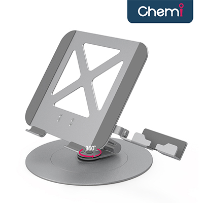 | 기타사항 | * 손 쉽게 돌려쓰는 360도 회전식 디자인 * 커스텀 가능한 높이 + 각도조절 * 스마트폰도 거치가능한 모듈 장착 * 알루미늄 메탈 재질 자연냉각 구조 * 논슬립 실리콘패드를 적용하여 미끄럼 방지효과 * 접이식 구조로 휴대가 간편함 |