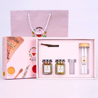 국내산 꽃차(중)+보틀 4종 선물세트 보틀풀칼라 제작포함