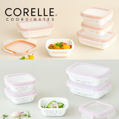 코렐_코디네이츠 밀크글라스 밀폐용기 혼합 5종 (산호세/자카드밴드)