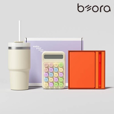 BOR 텀블러 문구세트 키트 (밀크티 텀블러+마카롱 계산기+노트볼펜)
