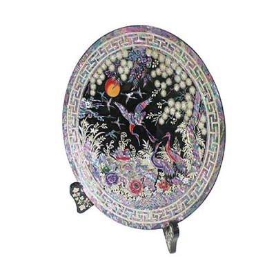 자개원쟁반(대)-원앙송학