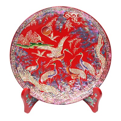자개원쟁반(미니)-송학(적)